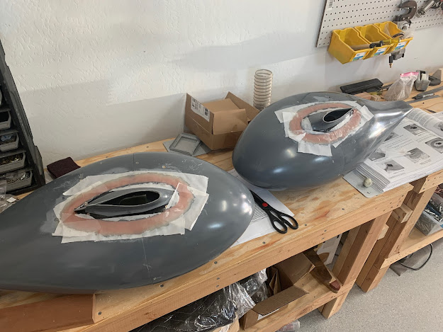 Once the gear was installed, I ended up doing the landing gear fairings as well because the plane was still on the sawhorses. I didn't want to have to lift the plane later on once the engine was installed, so this made it an easy decision. I also don't have my avionics or engine yet, so nothing better to do. Fiberglass, yay!
